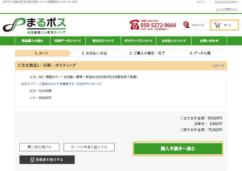 商品購入の流れ:印刷・ポスティング購入の場合