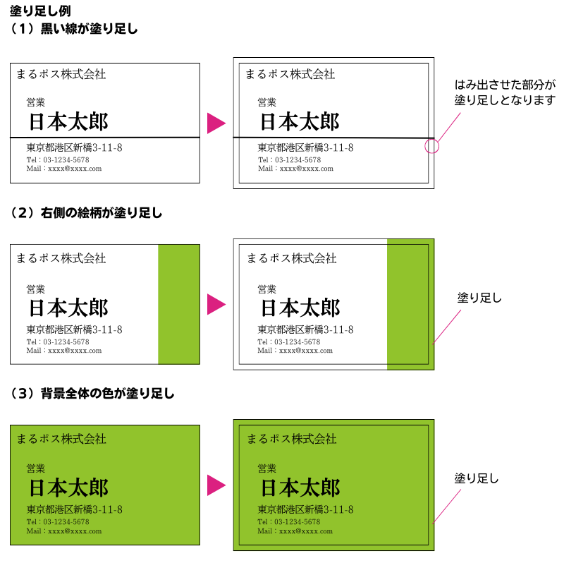 ※「塗り足し」がないデータはお客様に差し戻し、データを修正後、再入稿して頂く可能性がございます。