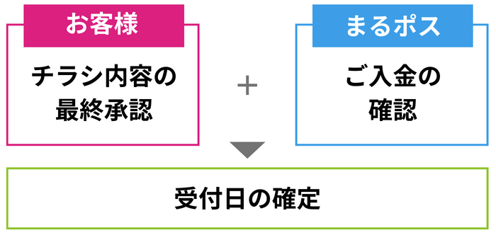 受付日とは、お客様へチラシの納品日と納品場所をメールでお知らせ出来る日のことを指します。